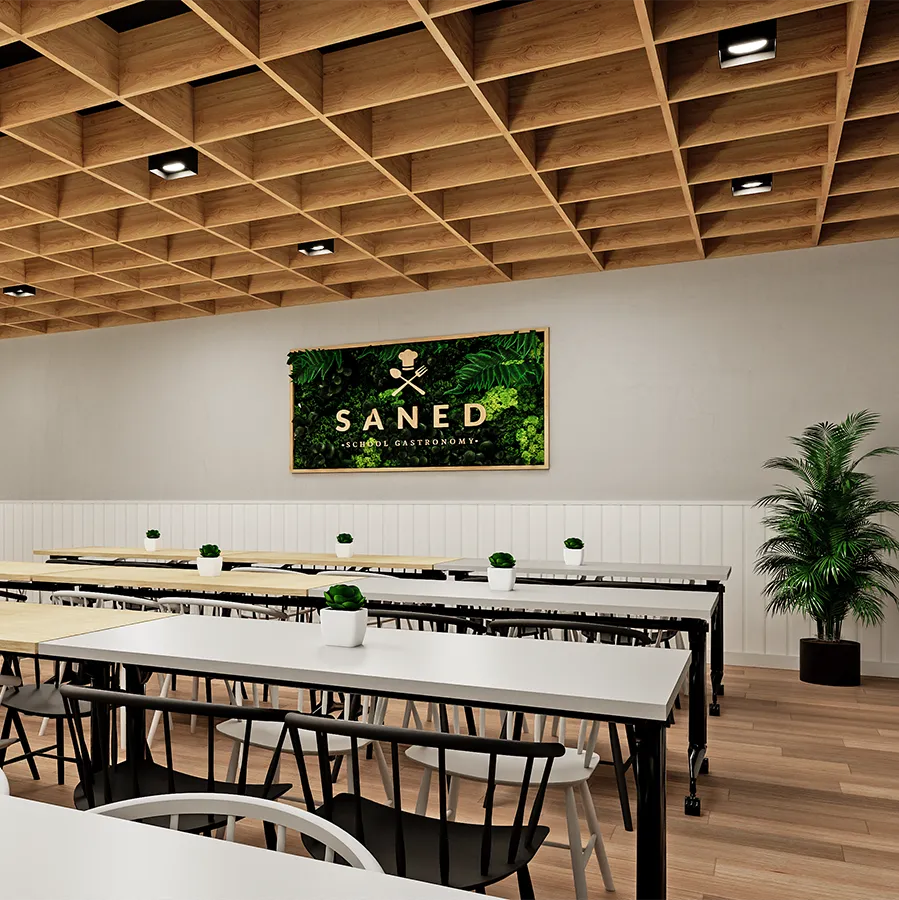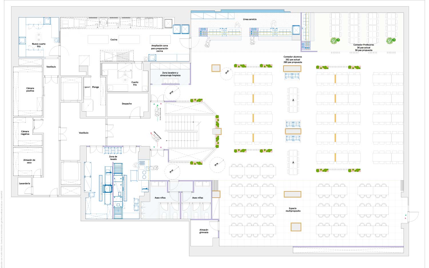 Proyecto de reforma integral de comedor de colegio que busca un cambio radical frente al modelo de comedor tradicional. En dicho espacio se distribuye el mobiliario tal que las ubicaciones y tipologías permiten superar la barrera de la monotonía.